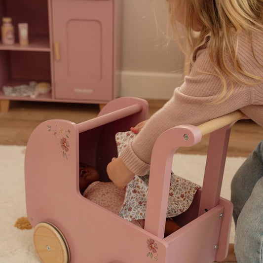 Little Dutch - Carrozzina per bambole in legno con tessile