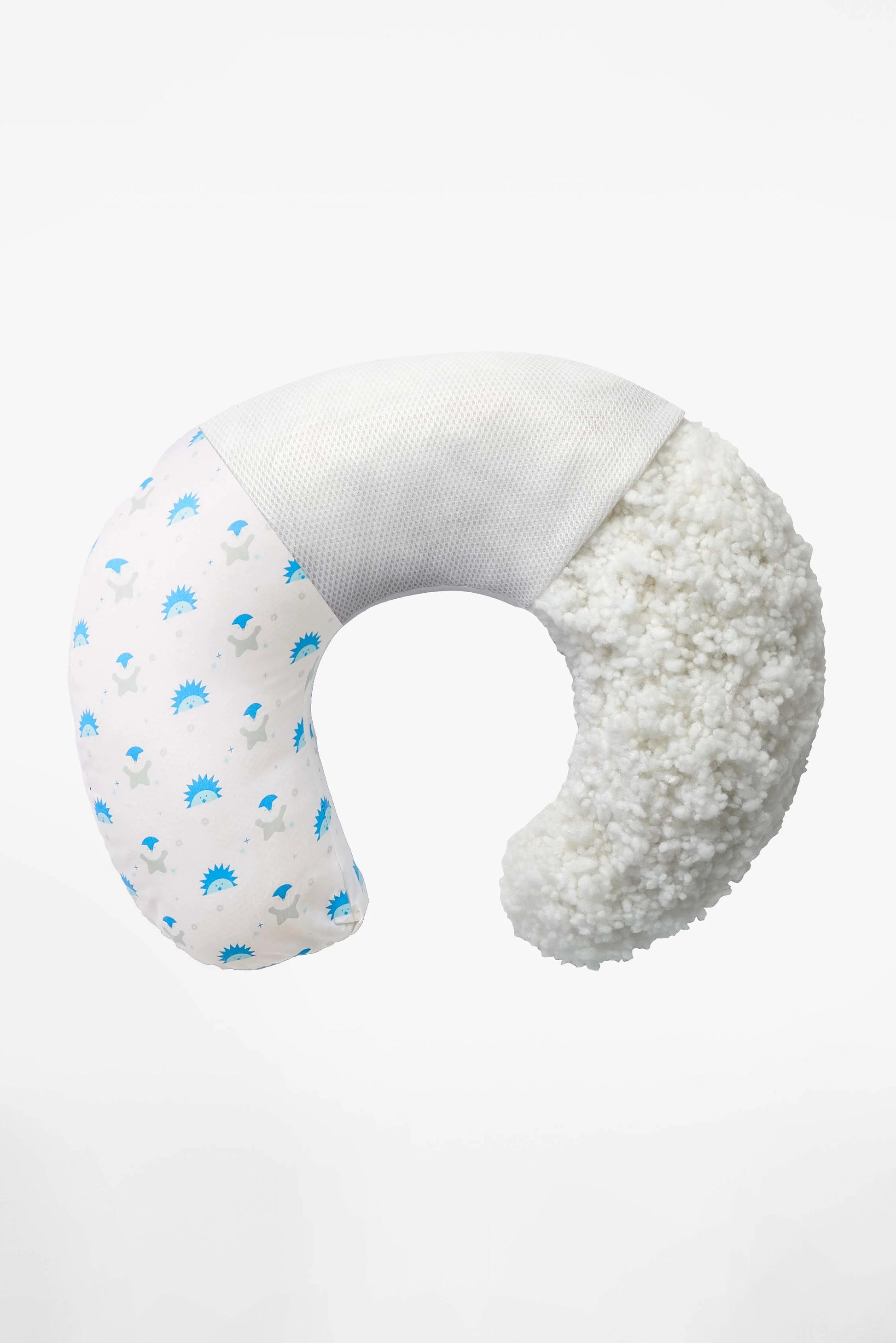 Morbido e compatto, crea una base stabile e accogliente sia per l’allattamento al seno che con biberon, rendendo ogni poppata un momento più sereno. La fantasia riccio/pinguino celeste, dolce e giocosa, aggiunge un tocco tenero e luminoso alla routine quotidiana.