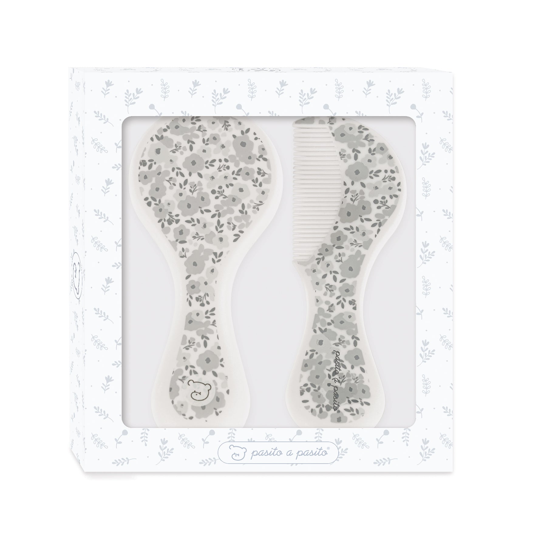 Pasito a Pasito - Set spazzola e pettine fiori grigio