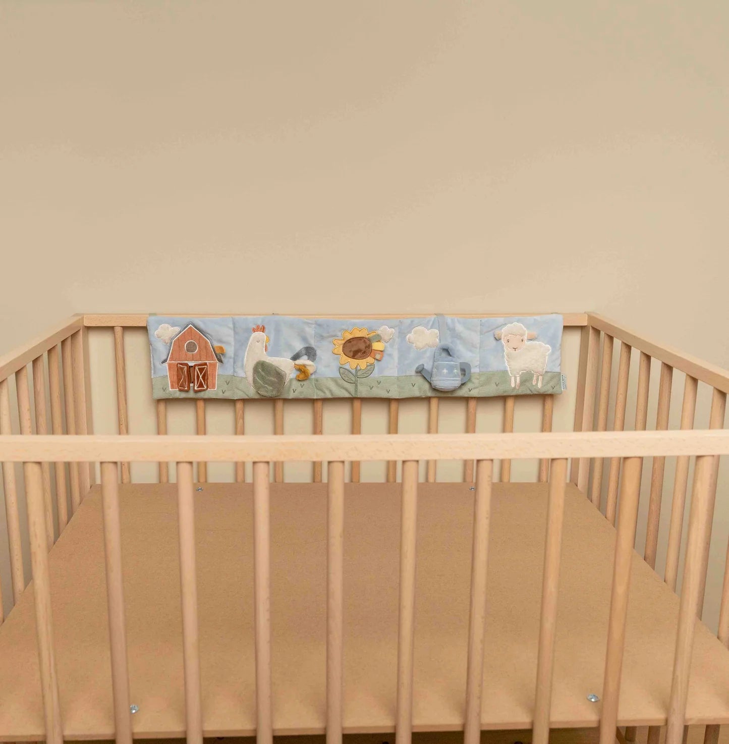 Grazie al suo design delicato e ai colori tenui tipici della collezione Little Farm, si integra perfettamente nella cameretta, offrendo stimoli dolci senza sovraccaricare il bambino.