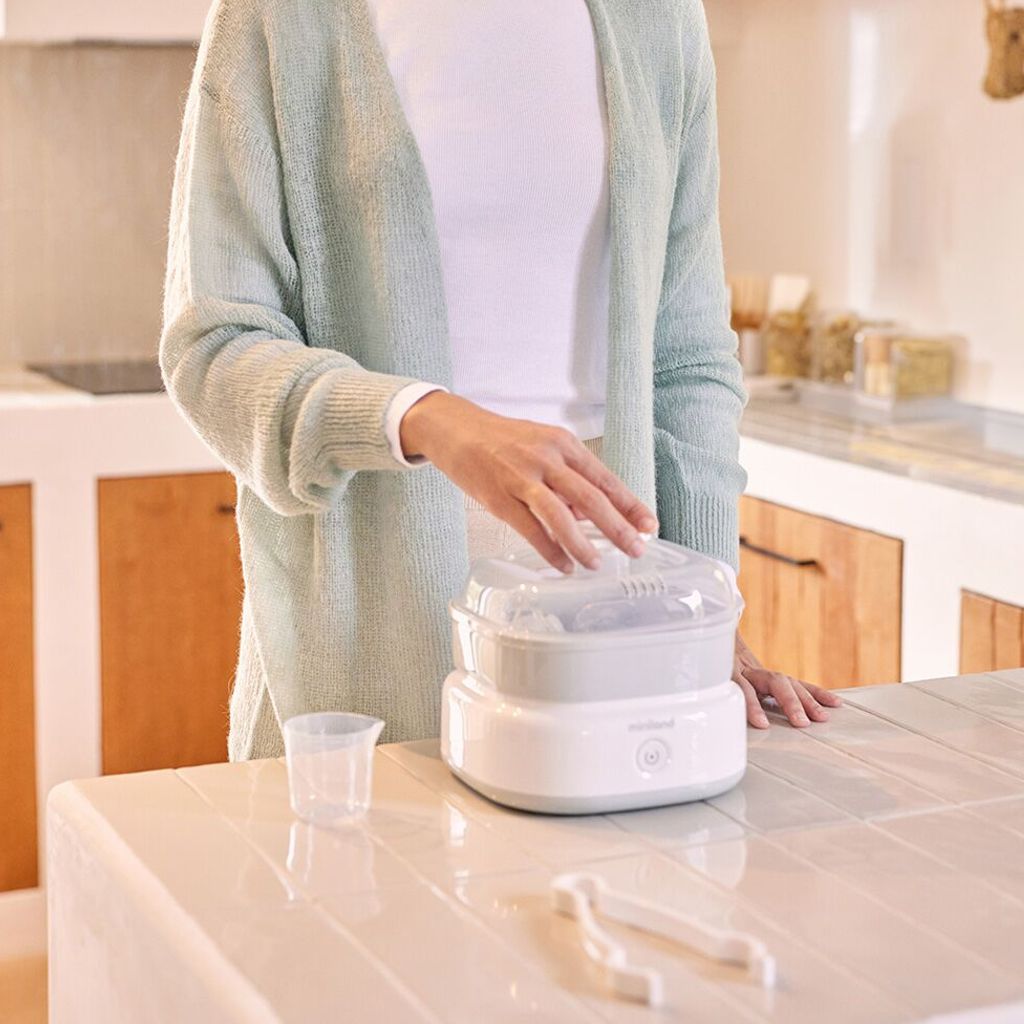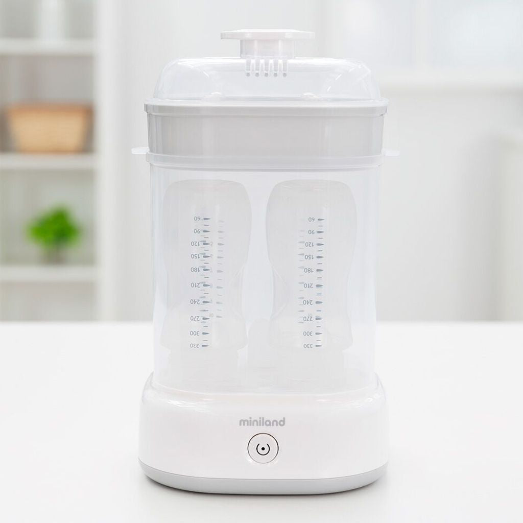 Con lo Sterilizzatore a vapore Mini Steamy Miniland, la pulizia degli accessori del tuo bambino è semplice, veloce e sempre sicura.