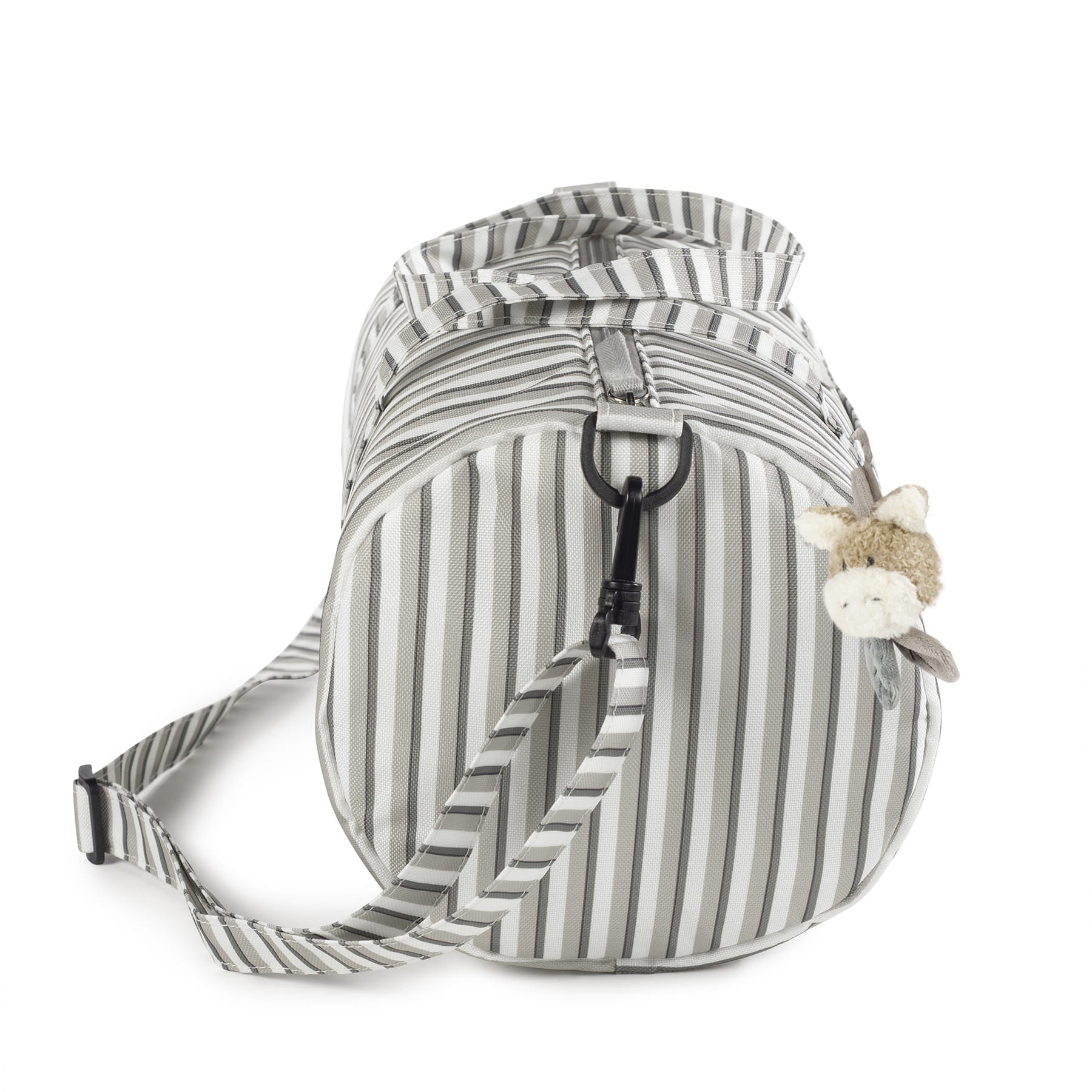 La Borsa Weekend Botton Strisce Walking Mum è pensata per accompagnare mamma e bambino nei weekend, nelle prime vacanze o nelle notti fuori casa, unendo grande capienza e design pulito. Il motivo a strisce, sobrio e senza tempo, dona un’estetica fresca e ordinata, facile da abbinare e sempre attuale.
