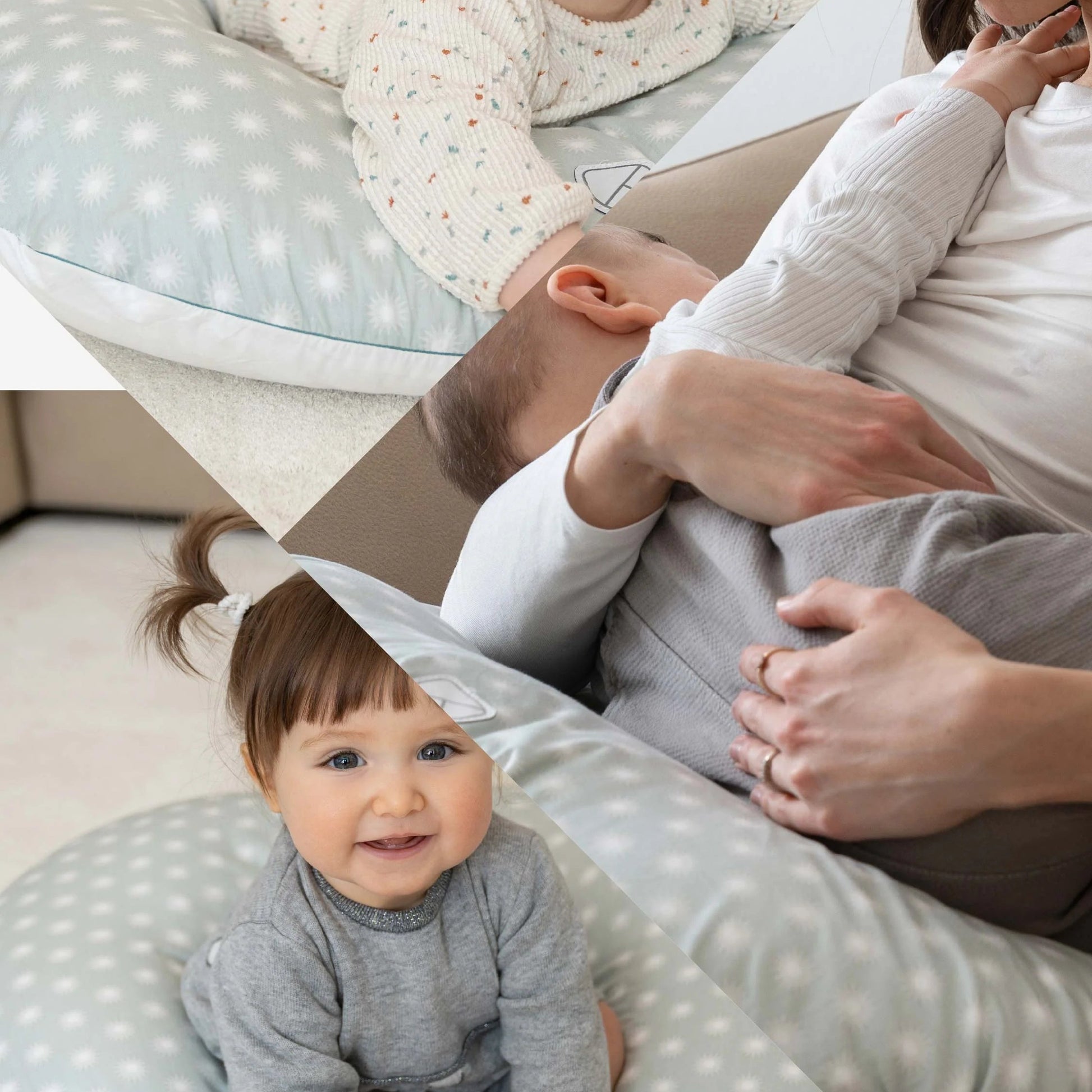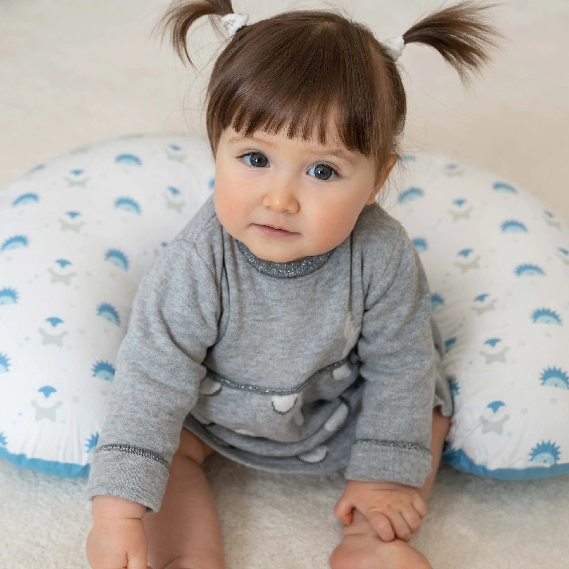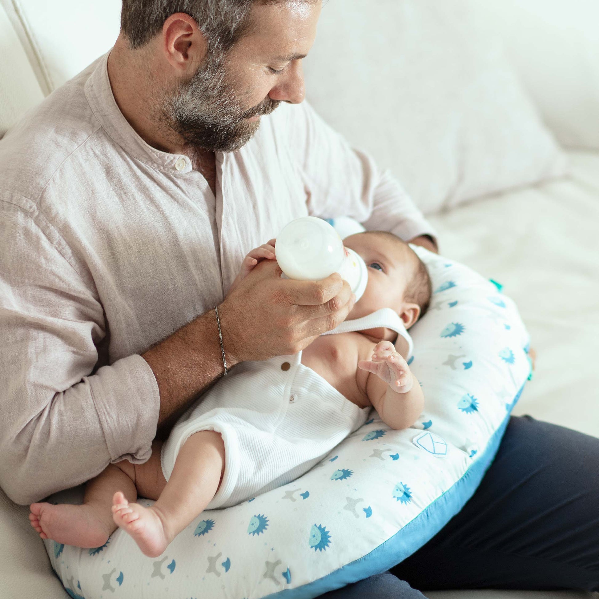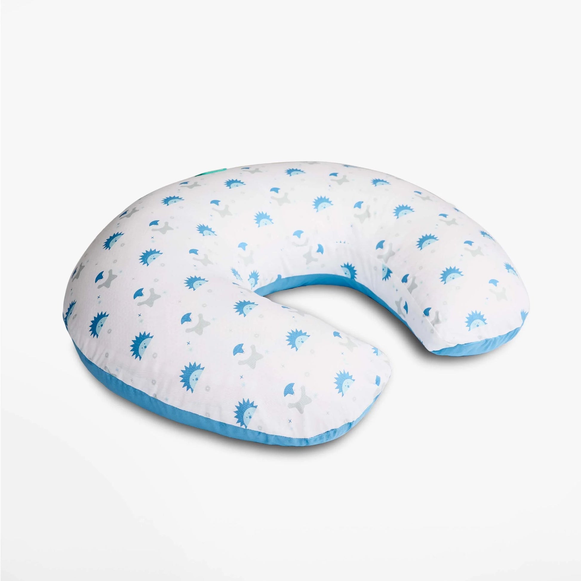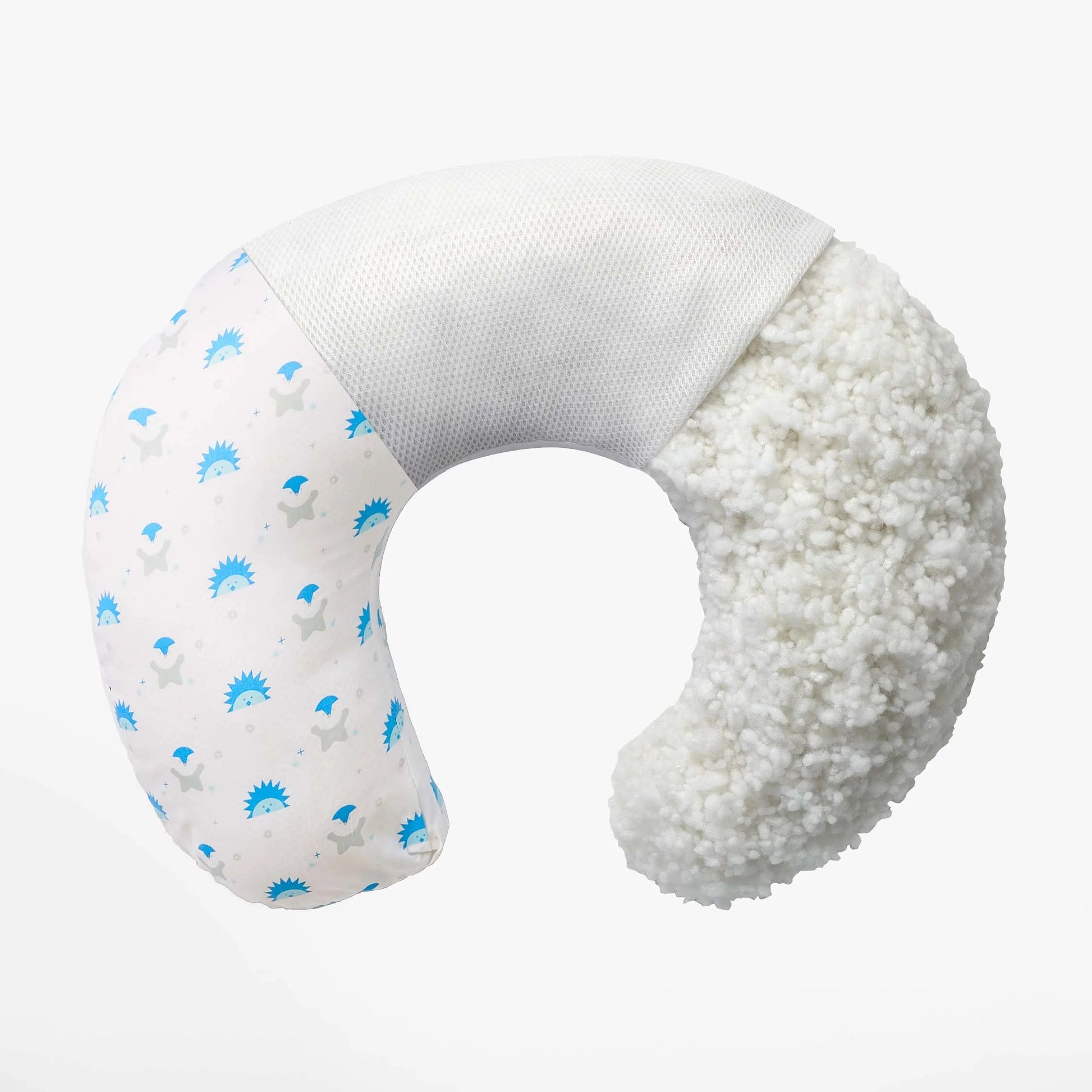 Morbido e compatto, crea una base stabile e accogliente sia per l’allattamento al seno che con biberon, rendendo ogni poppata un momento più sereno. La fantasia riccio/pinguino celeste, dolce e giocosa, aggiunge un tocco tenero e luminoso alla routine quotidiana.