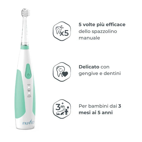 Lo Spazzolino elettrico per bambini Nuvita è pensato per accompagnare i più piccoli nella routine quotidiana di igiene orale, rendendo il momento del lavaggio dei denti efficace, sicuro e divertente. La tecnologia sonica delicata aiuta a rimuovere la placca rispettando denti e gengive sensibili, favorendo fin da subito buone abitudini.